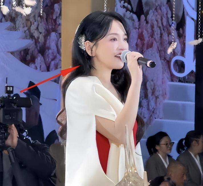仿佛她身后的不是红绸背景板,倒更像是当年林俊杰演唱会上的升降台。